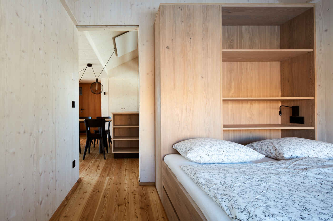 - Ansicht: Schlafen im Doppelbett mit Blick auf die Berge oder Weide